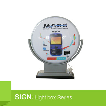 Aluminium frame, iron stand, acrylic panel, fluorescense light, ballast, cable |